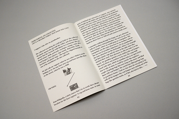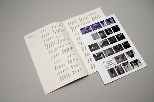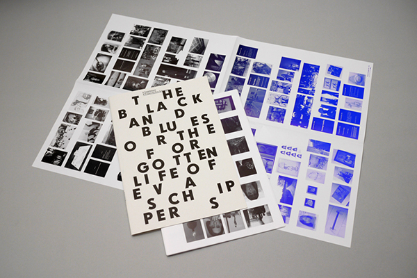 'This publication was conceived as a supplement to the forgotten life of Eva Schippers, showing the parts of an artistic practise that are seldom exposed; failures, unfinished ideas, stolen sentences, unwritten stories. These fragments are collected and spread over five posters in chronological order; starting with the most recent finds and then going back in time untill 1997, the year when I started collecting to remember. It consists of approximately 480 images. Images to be remembered, reused and appropriated. With the contribution of the writer Maria Barnas, reflecting upon the affect of collecting and archiving, the Black and Blues is the first supplement. It is a transient attempt to display a complete collection of ideas and a practise that is always in motion, by marking this moment.